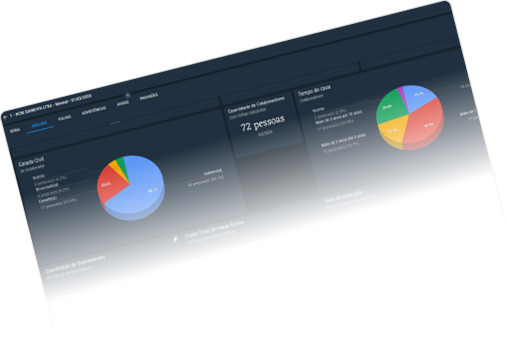 Indicadores atualizados da folha sempre disponíveis, com dashboards e relatórios personalizados.